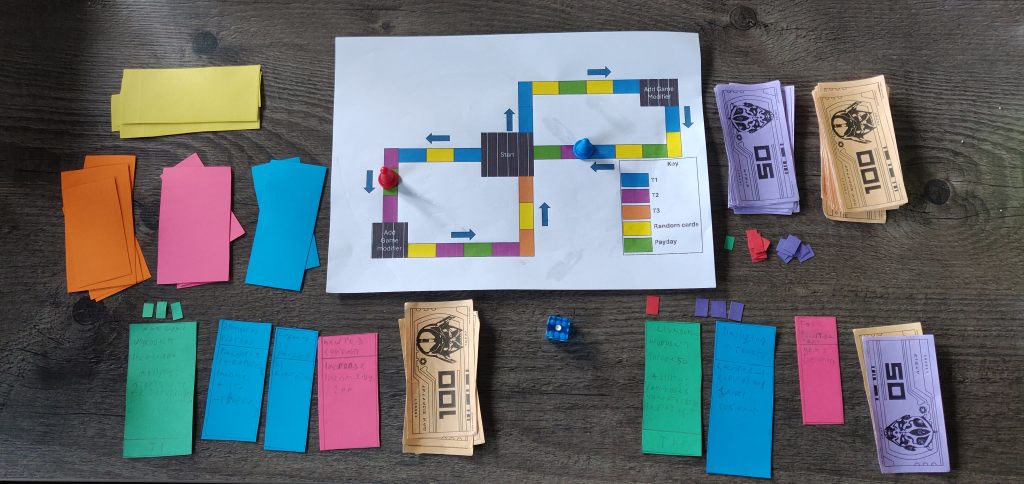Part of my Masters: a board game based on the idea of video game monetisation. 2024.