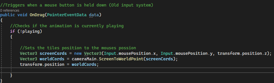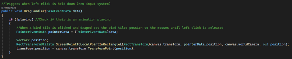 Due to the age of the project, the code that handled inputs was outdated and needed to be updated before the project would function properly. Shown below is an example of the old and new input code.