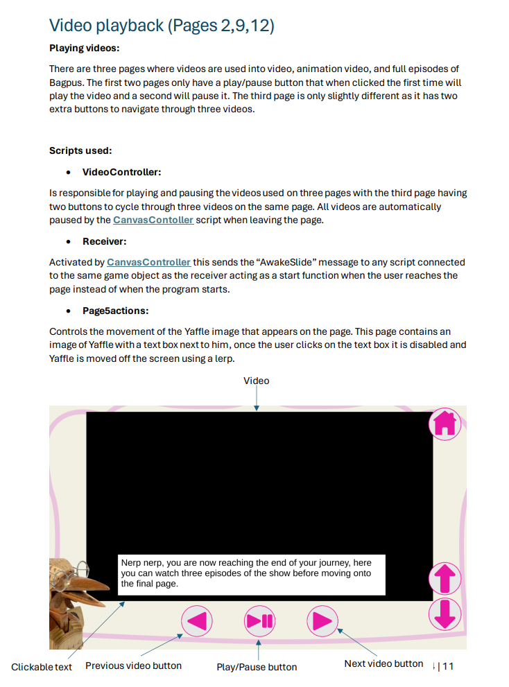 On top of commenting on the code, I was responsible for creating external documentation detailing how the interface works. I documented what happened on each page and how each script connected, to make debugging easier for future developers.