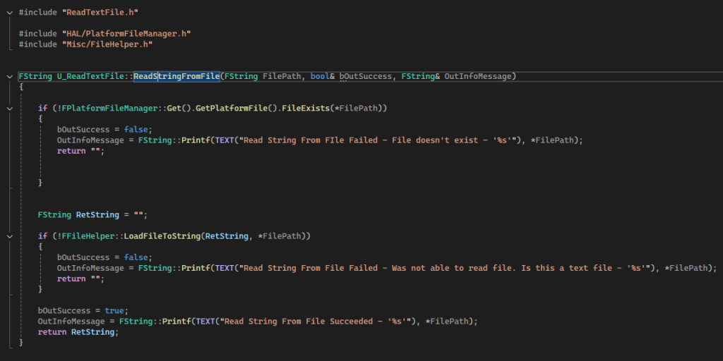Blueprint versatility is extremely impressive, however it does have blind spots. For this project, it was the importing of text files, more specifically emails in text form. I used C++ to create a function that is able to search the files on my computer based on an input file path and extract the text from a TXT file.