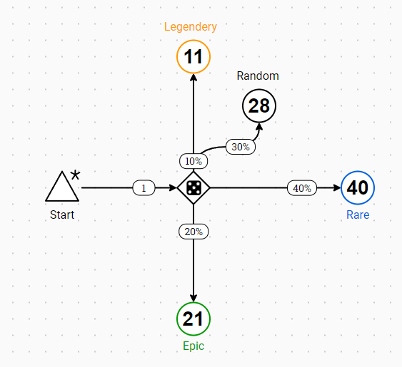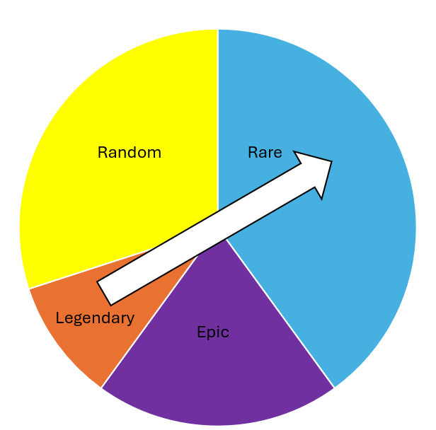 To see how the spinner would work, I used a simulator to show the results across 100 spins. The results then dictated the percentages of each card on the spinner. While this method of testing is not 100% accurate, as opposed to how a spinner behaves in real life, it has helped me balance the sizes of each space on the spinner without having to create a range of physical spinners.