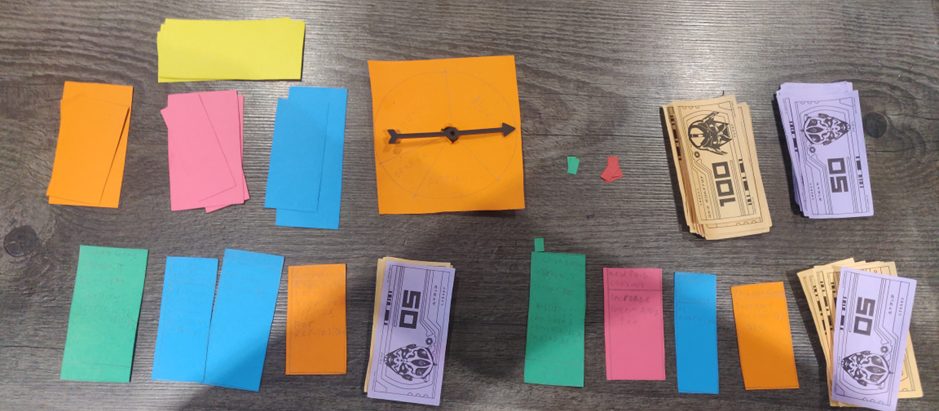 I received a lot of useful feedback which helped me make important changes. I was struggling to find ways to have the players spend money. I created a risk-reward system with players needing to risk money to make money. I changed income per turn to be what it says on the cards, removing the need for complicated calculations.